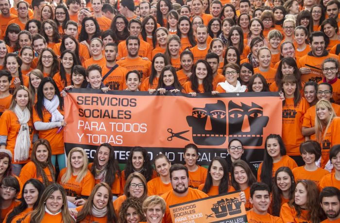 5) The transversal defense of public services and social rights against the crisis and Spanish sovereign debt. These five features have not only expanded and strengthened the movement, they also infected other collectives that have assumed part of the vocabulary and organization of the 15M Movement. For example, the Mareas Públicas (Public Tides), workers associations in defense of the different public services in Spain: education (Green Tide), health care (White Tide), social services (Orange Tide), civil servants (Black Tide) or feminists in defense of the rights of women (Purple Tide). The ‘tides’- thanks to the transversal logic of the 15M Movement – surpassed the trade unions’ sectoral interests, linking the defense of dignified labor with the defense of universal social rights.